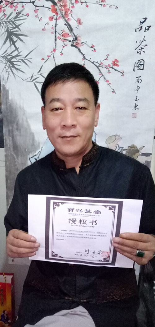 修玉东,男,汉族,字悟得 。1966年出生于书香世家 ,军人出身,祖籍山东,河南商丘人,现居北京。职业画家,中国书画研究院会员,艺术委员会会员。自幼酷爱书画 ,临池不辍,长期从事中国画创作,工写结合,笔墨粗放,格调古朴,水墨酣畅。尤以马、鸡、鹰最为擅长。兼修人物、花鸟、山水等。绘画题材丰富,注重传统,又力求创新,形成雅俗共赏的艺术风格。
