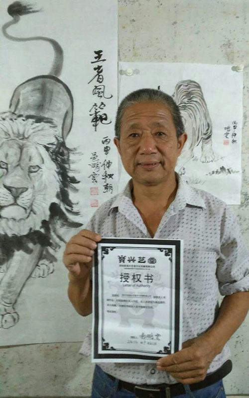 郝鹏云,1954年出生于陕西省大荔县,字一丁,虎威堂主。自幼喜爱绘画,青年时从事电影放影宣传员,教师,企业采购员,画过电影广告,后搁笔。近年迷上画虎,受冯大中,宗玩华,季泽夫影响颇深。他的作品《啸山图》《蝉戏虎》《虎》在2011年,2012年以2.4万元义拍成功。其作品连年参加央视,省市县各级书画大展。作品被许多企业和个人收藏。