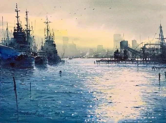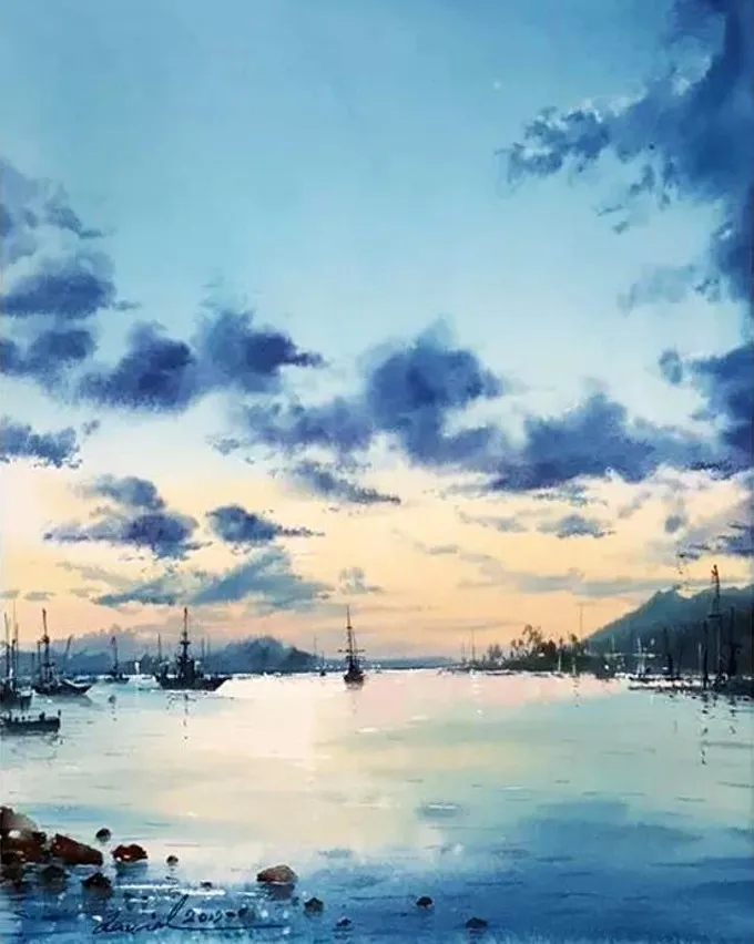看他笔下的水景,仿佛是在看美景画画,开始了一个悠长的梦。
