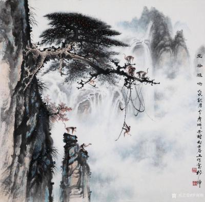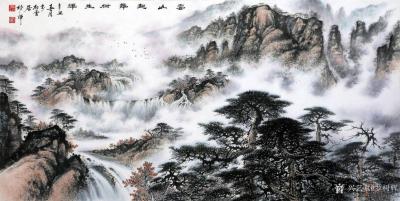 石涛说“搜尽奇峰打草稿”,罗树辉先生为了收集素材,先后数次登泰山、黄山、峨眉山、三清山,又游张家界、九寨沟 …… 目识手记,积累了许多名山大川雄奇的景色,化作自己创作的营养,以华滋苍润的笔墨语言,将祖国大好河山雄伟壮丽的景色跃然呈现在扇面上。他的作品《深山听鸟语》、《黄山双剪峰》、《妙境天成》、《灵猴观海》等一批精美的扇面画就是得益于他踏遍群山细心观察整理出来。画家满怀着对祖国山山水水的热爱和激情,以酣畅的笔墨,巧妙地构思,意达笔端,情涌纸墨,方寸之纸,挥洒千里,神驰化外,以博大浩瀚的气势,变化万千的景象,新颖深邃的意境,向人们展示了一幅幅气韵生动、雄伟壮丽的画面。