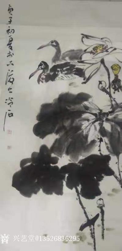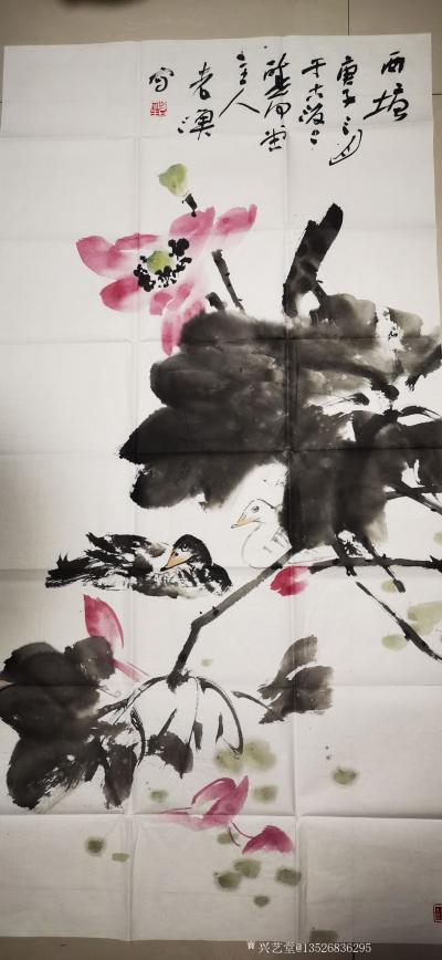 作品介绍:荷塘花苑。王冷石,开封美协副主席,国家一级美术师。师承中央美术学院博士生导师张立辰。主攻中国大写意花鸟画136*68