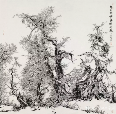 徐家康焦墨胡杨系列作品《大美胡杨 雾凇奇观》