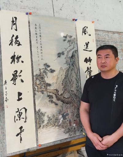 国画山水画《烟笼古寺》,作品尺寸150cmx70cm;第二幅国画人物山水画《鬆蔭高士图》,作品尺寸115X50cm;李亚南书画工作室作品。